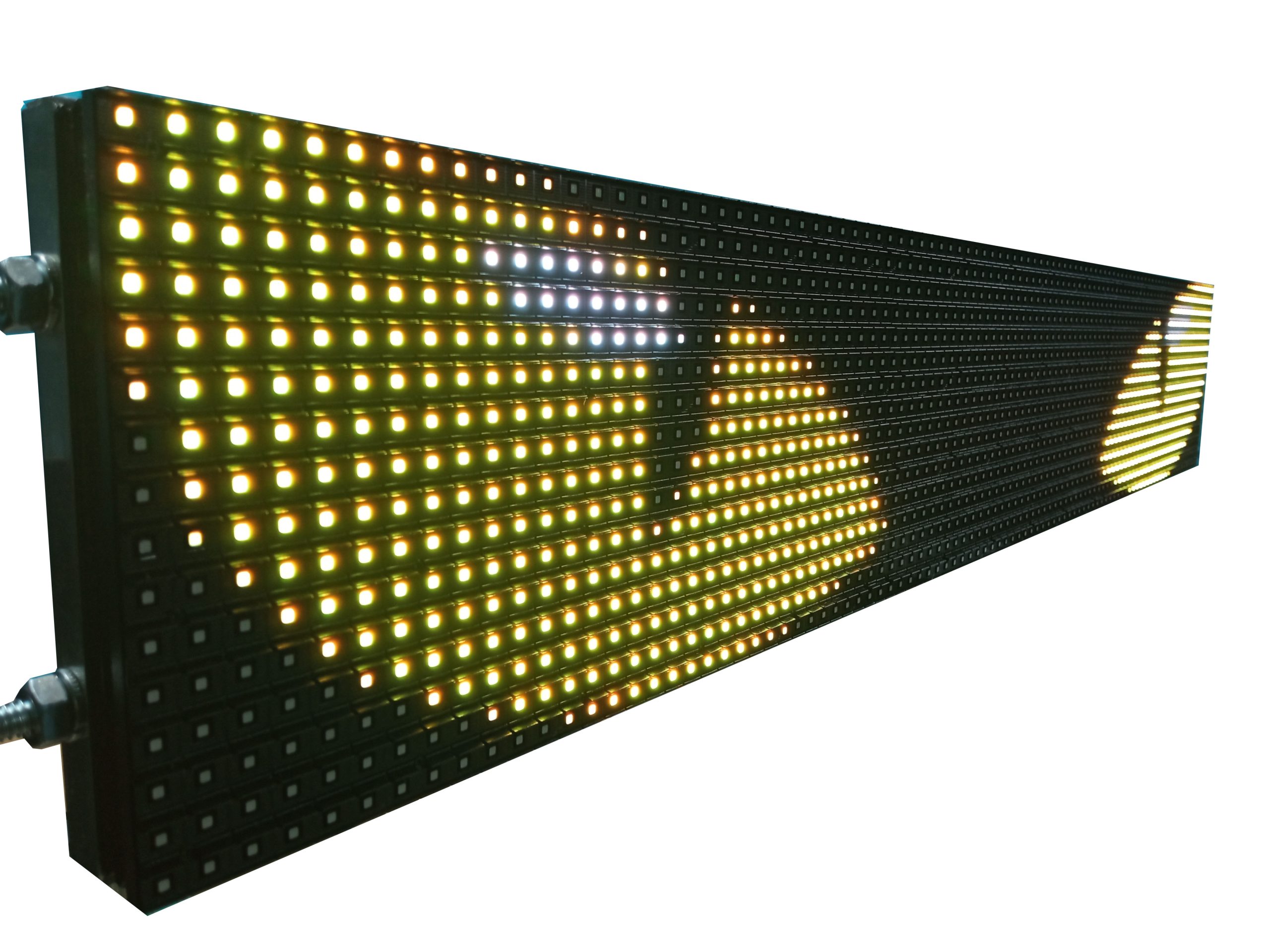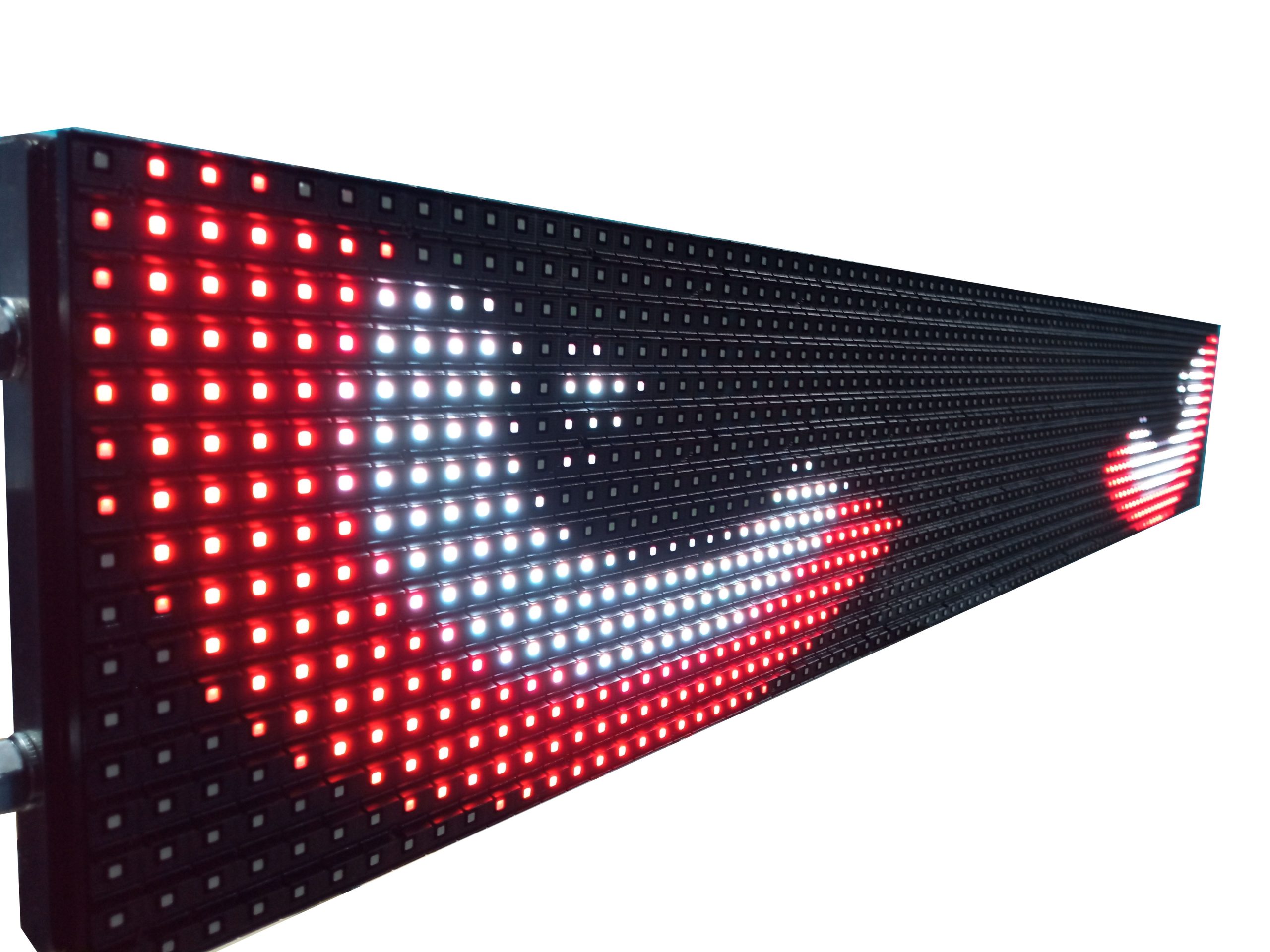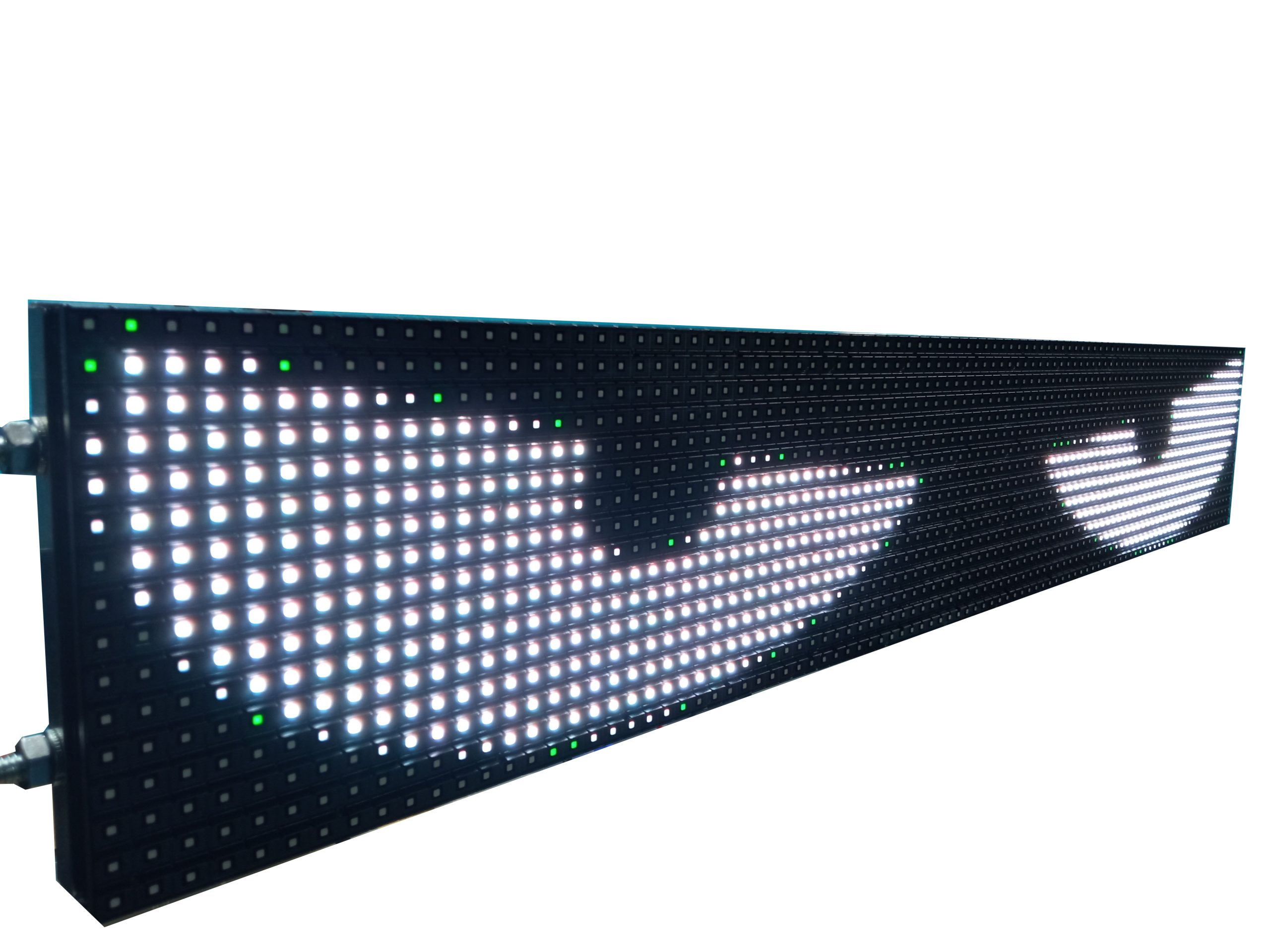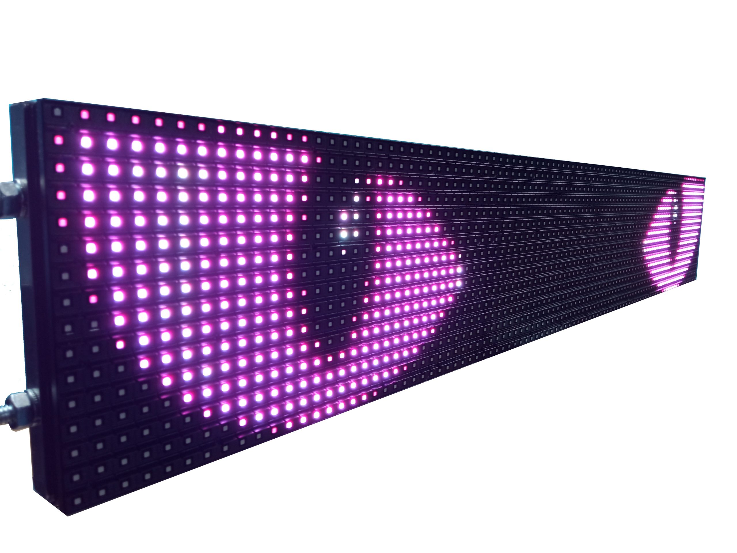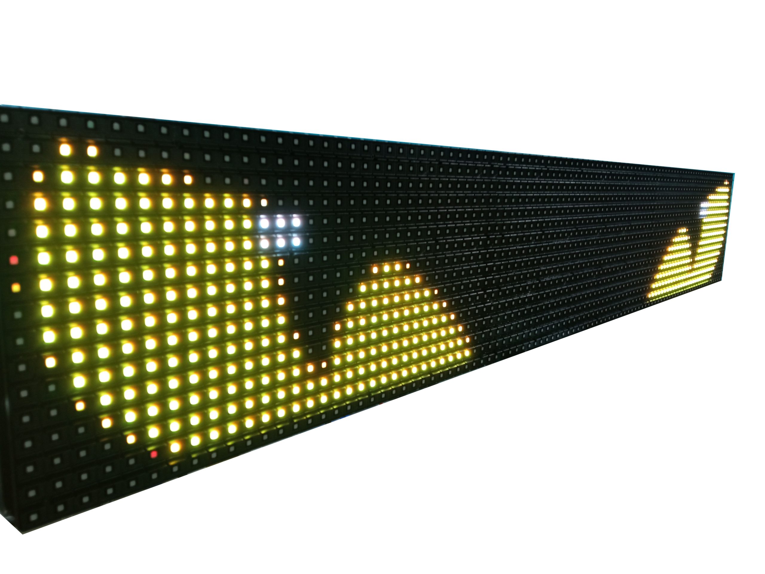 Alta Visibilidad y Claridad Nuestro letrero LED RGB está diseñado para ofrecer la máxima visibilidad, incluso en condiciones de luz adversas. Gracias a su tecnología LED de alta luminosidad, los mensajes y anuncios son claramente visibles tanto de día como de noche, asegurando que sus pasajeros siempre estén informados.